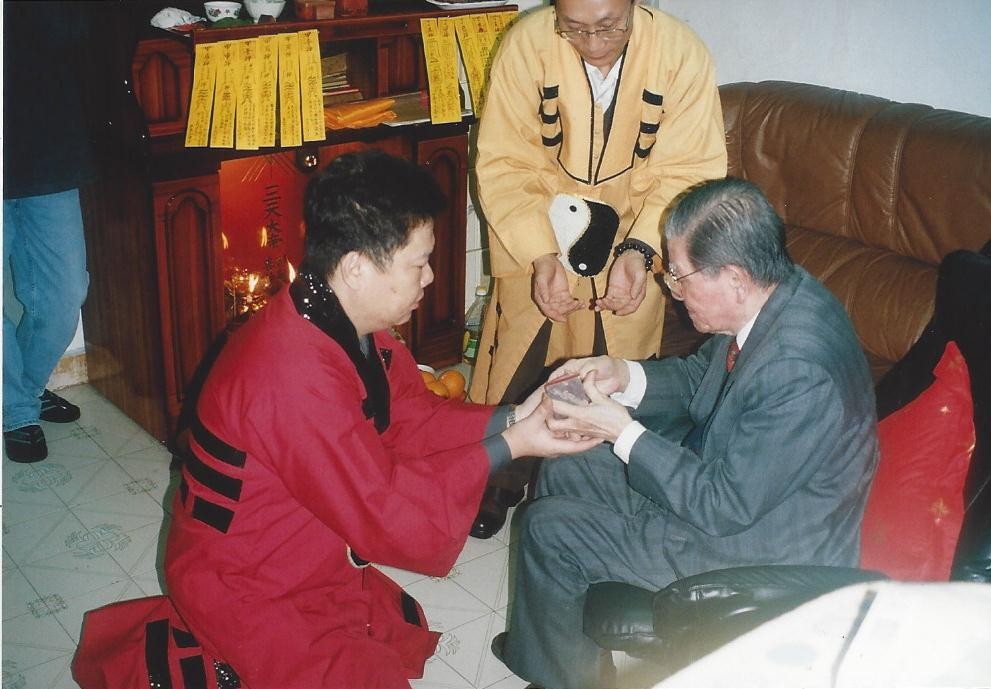 年青時翁師傅常到馬來西亞,機緣巧合下,遇到當地行胡家法的前輩們,從而得知,在民初年代,許多唐山的同胞被"賣豬仔"至南洋,生活艱苦,有些師公因此到當地,救民扶傾、贈醫施藥,並傳下胡秀華仙師正法。翁師傅得前輩賞識,獲授真傳。相比對下,發現香港傳下的,因多門門派互相交流下,難免滲雜。緣分下,回香港後亦成為曾憲真師公再傳弟子。